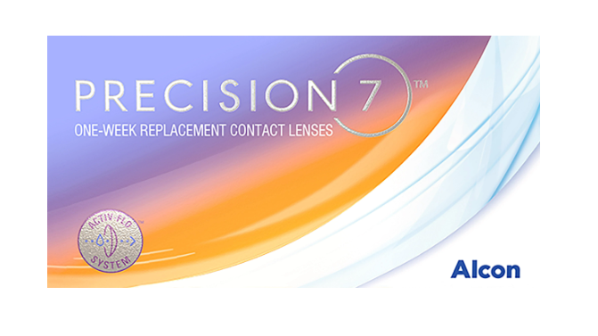 Information: Precision7 weekly contact lenses are manufactured using Activ-Flo system. The permanent, microthin, high-performance layer of moisture on the lens surface exceeds 80% water. The lenses feel moist and comfortable up to 16 hours of wear. The aspheric optical design corrects corneal aberrations for clearer vision.